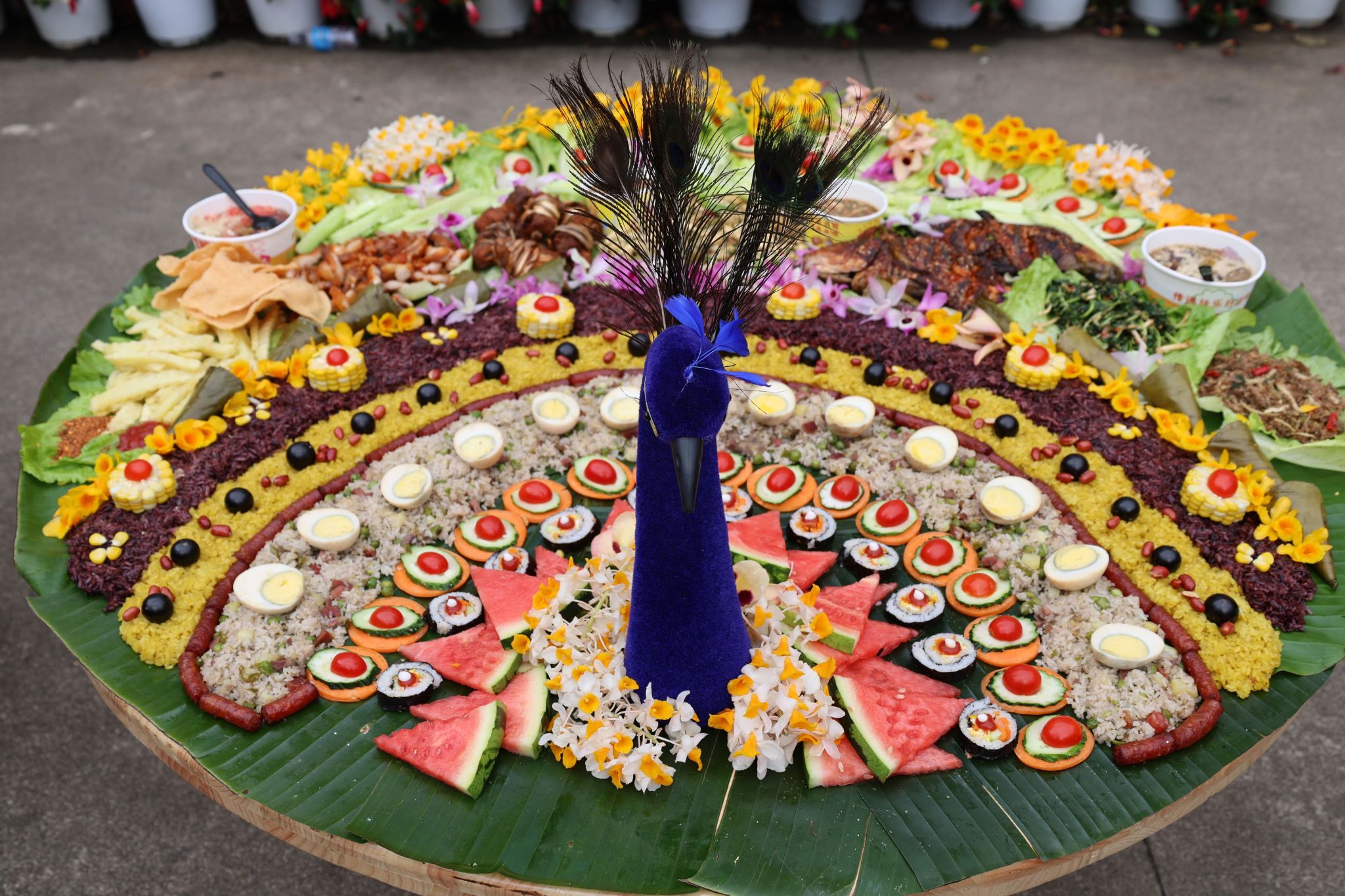 在美食展示和评选环节,“喜笑颜开”“石斛花开孔雀来”等美食依次陈列,评委们认真品尝每一道美食,并从菜品的香味、口感、创新性、摆盘、烹饪技巧等方面进行打分。经过激烈角逐,最终评选出了一、二、三等奖。