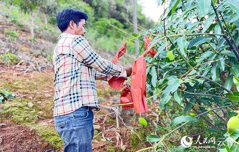 李加有忙着给芒果套袋。人民网记者 程浩摄