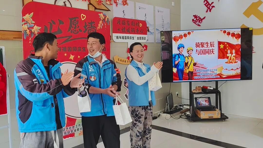 中秋、国庆“双节”来临之际,9月29日,龙陵县幸福里社会工作服务中心以“我与祖国同庆生”为核心,开展“骑聚生辰 与国同庆”主题活动,20余名外卖骑手共度温馨时光,深切感受同心同行的家国情怀。