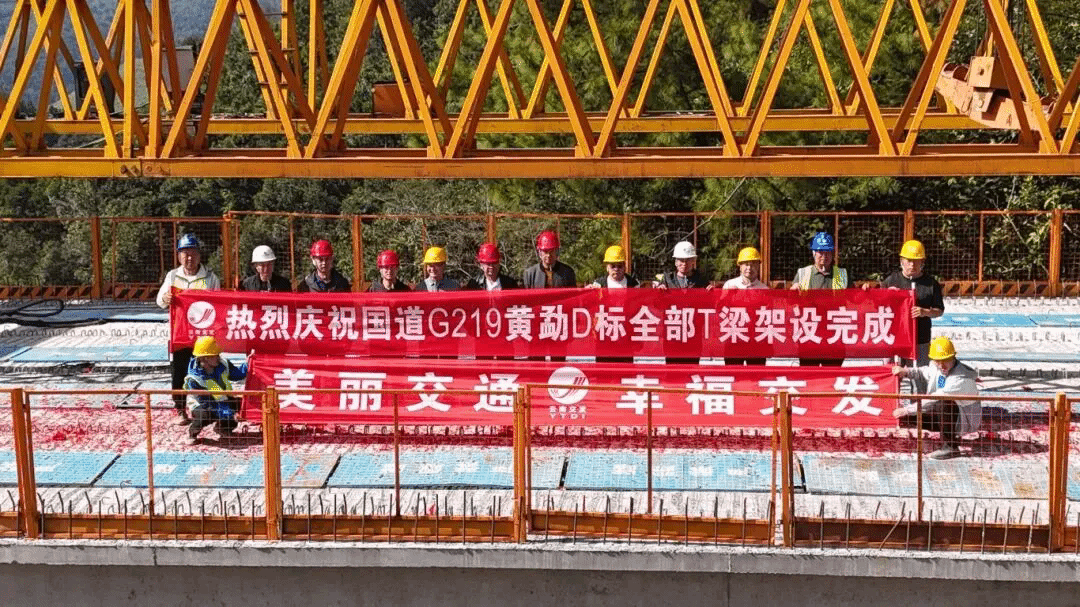 11月17日,国道G219龙陵(黄草坝)至龙镇桥段工程D标捷报传来—— 220片预制T梁已全部架设完成,10座总长1137.3米的桥梁顺利实现全幅贯通!
