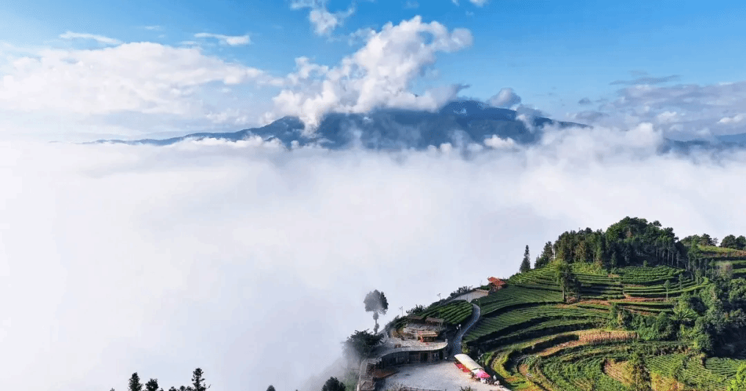 一次漫步至万亩茶园观景台时,眼前壮阔的梯田景观与茶山风景道让她豁然开朗:“家乡建设得这么好,还建设了旅游景区,这里藏着机遇。”她和丈夫当即决定,利用茶山观景台闲置空间,打造一个让游客“慢下来”的休憩驿站。于是,“崖边咖啡”的梦想,从一片茶海中“萌芽”。