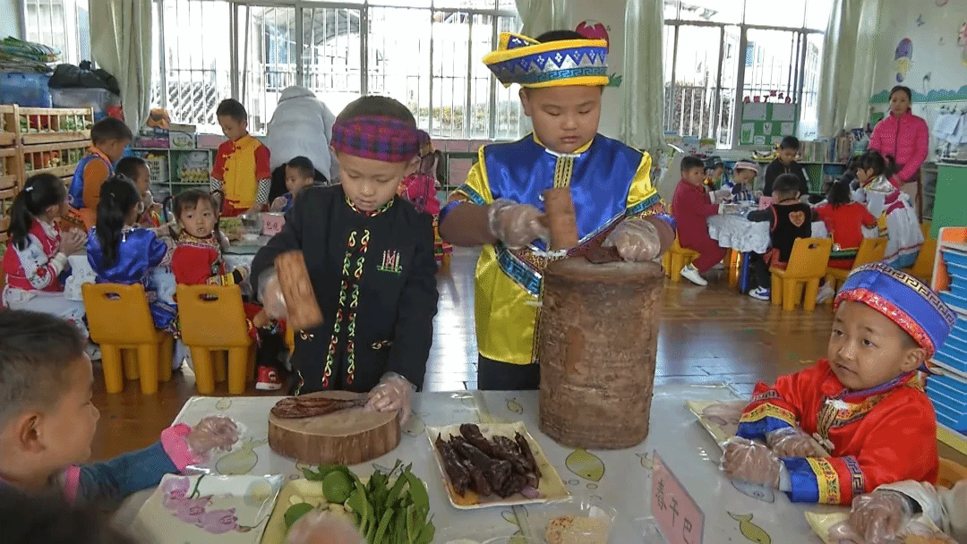 龙陵县以“根脉课程”为核心,构建了“1+3+N”课程体系。“1”是抓幼儿核心素养,“3”是红色家国情怀、绿色生态文明、金色民族智慧三条主线,“N”包括非遗体验、自然探索、亲子研学等活动。红色课堂上,孩子们通过沙盘推演、故事讲述,将革命先辈的英雄事迹铭记于心;石斛种植园里,孩子观察植物生长学护绿;傈僳族舞蹈、阿昌族蹬窝罗等非遗进校园,孩子在唱跳中了解民族文化。“我们不硬教知识,用场景化、体验式设计,让知识连起历史和未来,让每个孩子按自己的节奏成长。”李珊珊介绍。