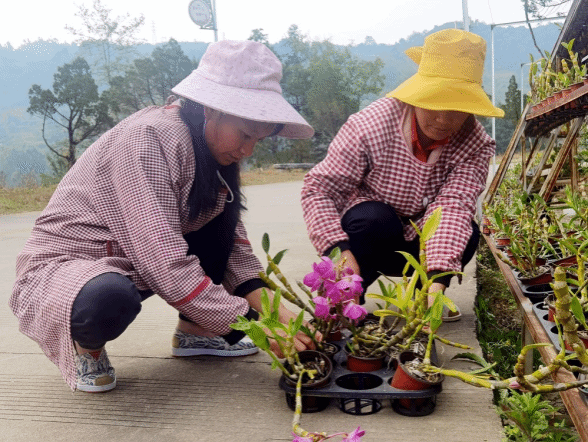 杨梅山村聚焦产业振兴,打造“催花基地+村播学院”两大核心载体。在催花基地建设上,积极申报争取项目资金460万元,新建占地面积8500平方米的石斛花卉催花种植基地,建设石斛苗床8750平方米,引进鑫农生物科技有限公司,创新“党组织+企业+合作社+农户”模式,推行“包种苗、包规划、包选址、包技术、包回收”的“五包”服务,免费供苗、技术指导、保底回收,解决了农户“缺成本、缺技术、缺销路”的后顾之忧。在村播学院打造上,引进龙陵鑫禾科技有限公司等电商企业,2025年初成立的村播团队运营7个账号,单个账号月销售额达30万—40万元。两大基地深度联动,形成“村集体出地、村民出力、电商主播出单、企业出货”的合作模式,每年助力村集体经济增收20多万元,带动60余户农户实现“家门口就业”,让产业发展动能更足、效益更好。