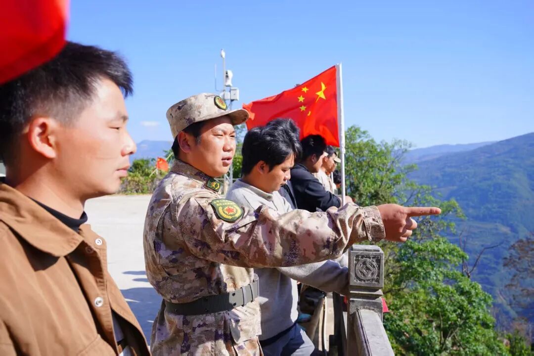 “‘一把锄头一杆枪,二十一年守边疆’,这座纪念碑是等养民兵排戍边的最好见证!”木城乡等养民兵排纪念广场上,五星红旗迎风招展,等养民兵连的民兵指着碑身文字,向青年们深情讲述:“咱们木城乡地处西南边陲,19.71公里国境线串联家园与国土。20世纪70年代,先辈们一手挥锄头耕耘,一手扛钢枪守边,在边境线上坚守二十一个春秋,用忠诚与热血守护安宁,留下‘守土有责’的精神传承。如今,这份责任正需要年轻一代接棒!”红色故事浸润人心,青年们眼中满是坚定。