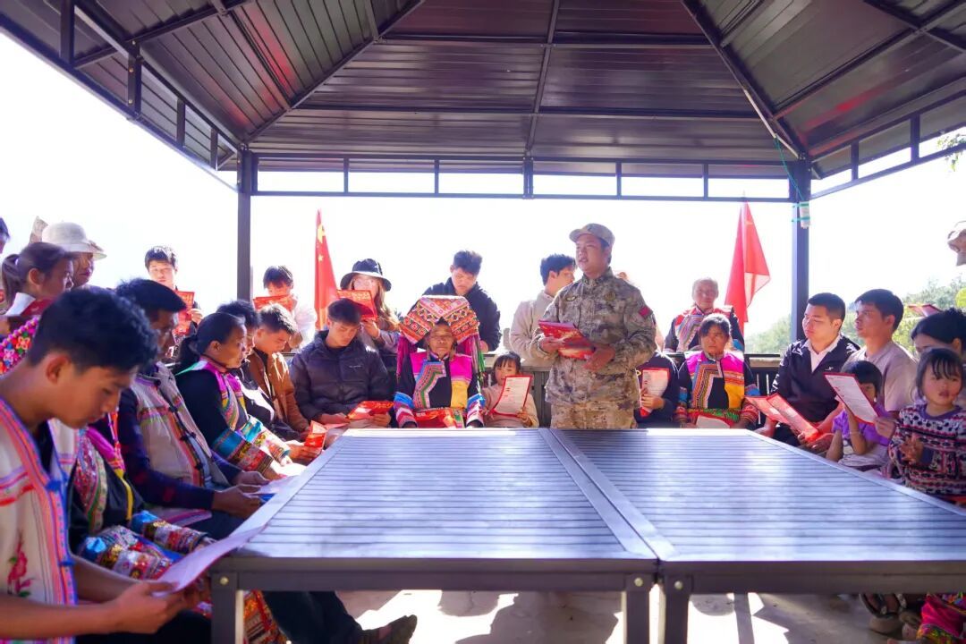 冬日午后,暖阳高照。龙陵县木城彝族傈僳族村寨的凉亭里,身着绚丽民族服装的男女老少围桌而坐,聆听专武干部讲解政策。“参军入伍能领服役津贴、家属优待金,退役可获职业技能培训和就业优先优待。”专武干部指着宣传手册,声音洪亮又亲切,“体检标准、政治考核要求都写得明明白白,大家有啥疑问咱现在就聊透!”通俗易懂的解读让征兵政策变得清晰,现场互动此起彼伏。