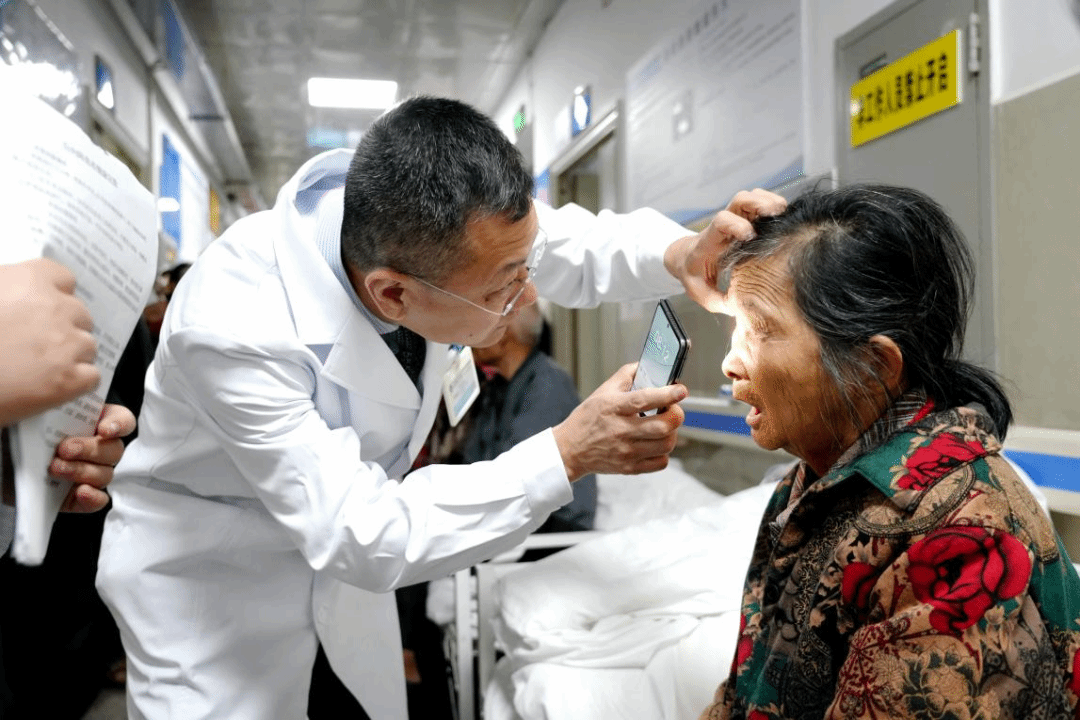 81岁的杨奶奶家在龙江乡,左眼患白内障多年,右眼几乎失明。十几天前,她的视力急剧下降,走路都需要人搀扶。手术后揭开纱布的那一刻,她激动地说:“我能看清医生的脸了。”复查显示,她的左眼视力恢复到0.5,已达正常人视力范围。