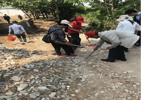 首先,志愿服务队带领村民集中力量打扫村组主干道路。随即,志愿服务队分组入户,帮助贫困户打扫庭前屋后,整理散乱物品,群干一家,用实际行动改善乡村卫生环境。