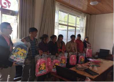 为全面落实《中共中央、国务院关于打赢脱贫攻坚战的决定》《云南省委省政府关于深入贯彻脱贫攻坚重大战略部署决定》及精准扶贫相关文件要求,充分调动全社会力量共同关注云南省贫困地区中小学生的健康成长,县发改局主动参与由龙陵县残疾人联合会牵头组织的“七彩阳光·守护童安校园行”活动,于2017年12月2日,到“挂包帮”扶贫挂钩点核桃坪村开展爱心安全包捐赠活动,向贫困儿童捐赠爱心安全包。