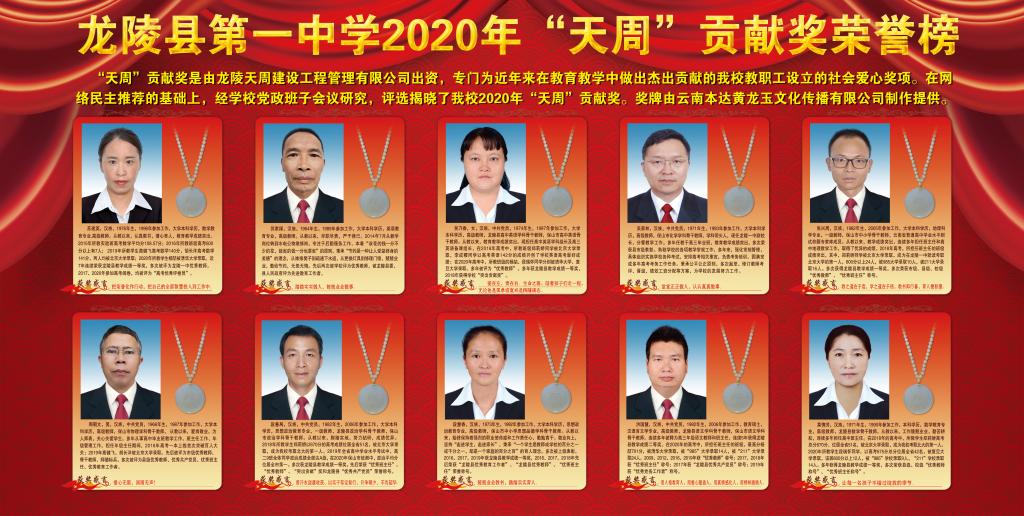 “岁月静好,是有人在为我们负重前行。” 近年来,龙陵县的教育事业取得了骄人的成绩,这是广大深处一线教育工作者舍小家、顾大家,起早贪黑、无私奉献,以及全社会共同关心的成果。设立“天周”贡献奖,旨在激励广大教师立足本职、潜心教学。“‘天周’贡献奖的颁发,在全校教职工中引起强烈反响,形成了比、学、赶、超的良好氛围,激励着广大教职工进一步践行“四苦”精神,希望“天周”贡献奖能够引起社会各界对龙陵教育事业的更多关注,进一步形成尊师重教的深厚氛围。”龙陵一中校长柏占亮诚挚说出了自己的心声。