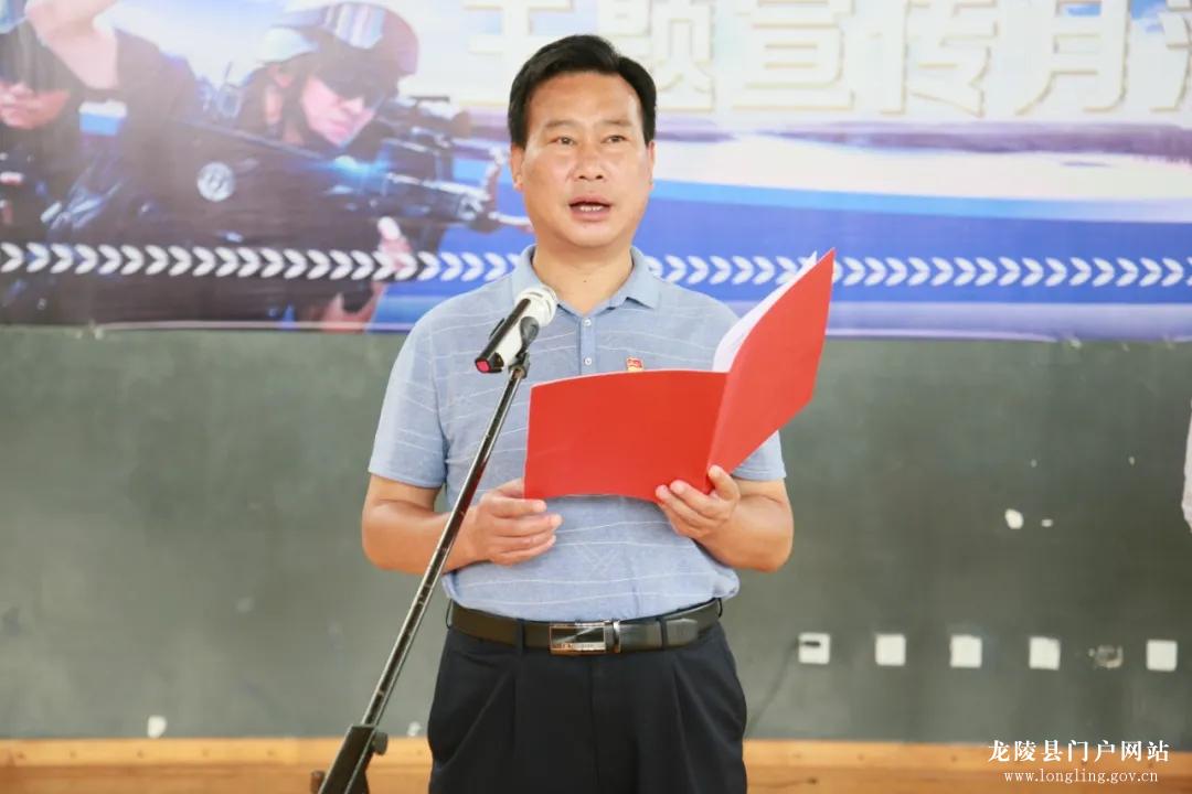 仪式上,县委常委、政法委书记、县反恐怖工作领导小组副组长张金龙同志宣布龙陵县“全民反恐共建和谐”反恐怖主题宣传月活动正式启动并作讲话。