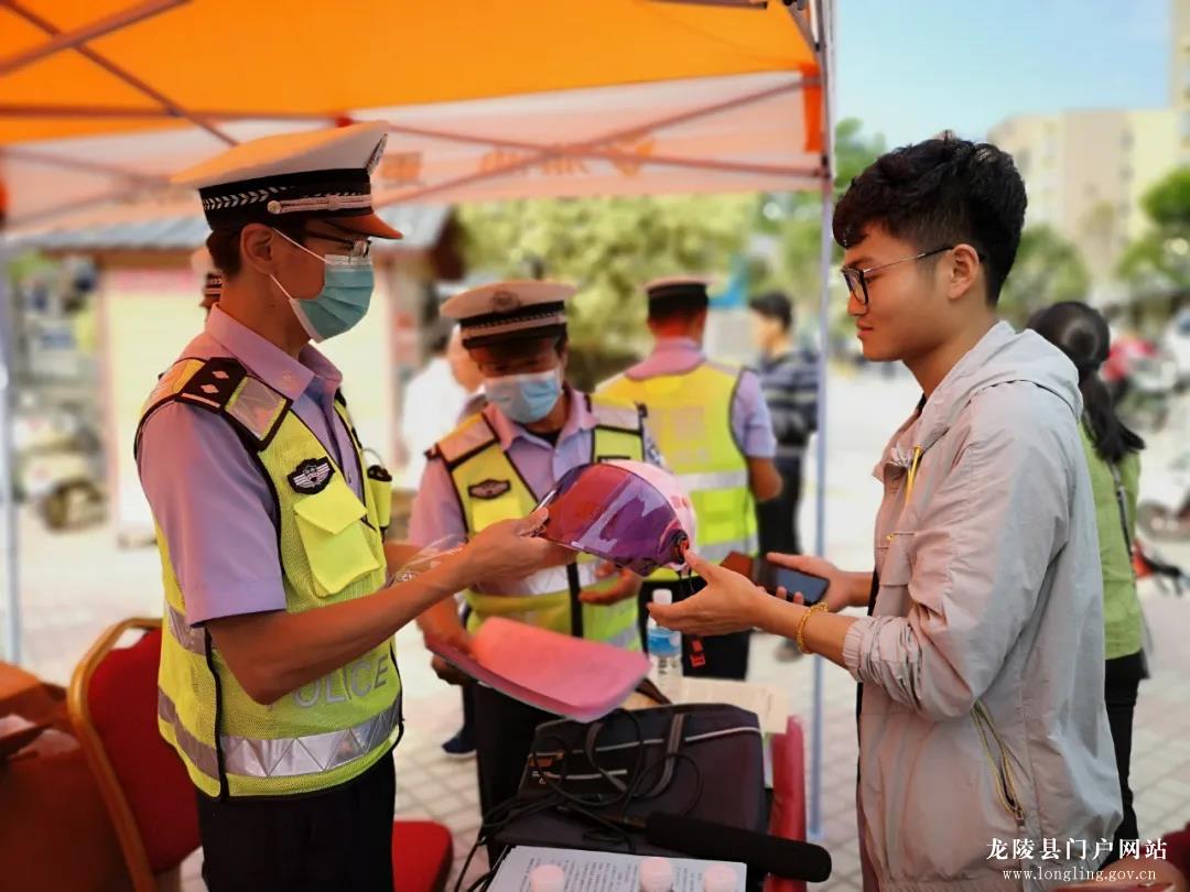 启动仪式上,交通民警、交通志愿者现场发放了500余份交通安全宣传资料,向环卫工人、外卖骑手和部分摩托驾驶人发放头盔400多个,与摩托车、电动车销售部负责人签订安全责任书30余份。
