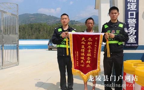 3月26日,位于龙陵县木城乡鱼塘垭口村老厂寨子的赵家永捧着锦旗带着妻子儿子来到警务室,热情的送来了一面锦旗。
