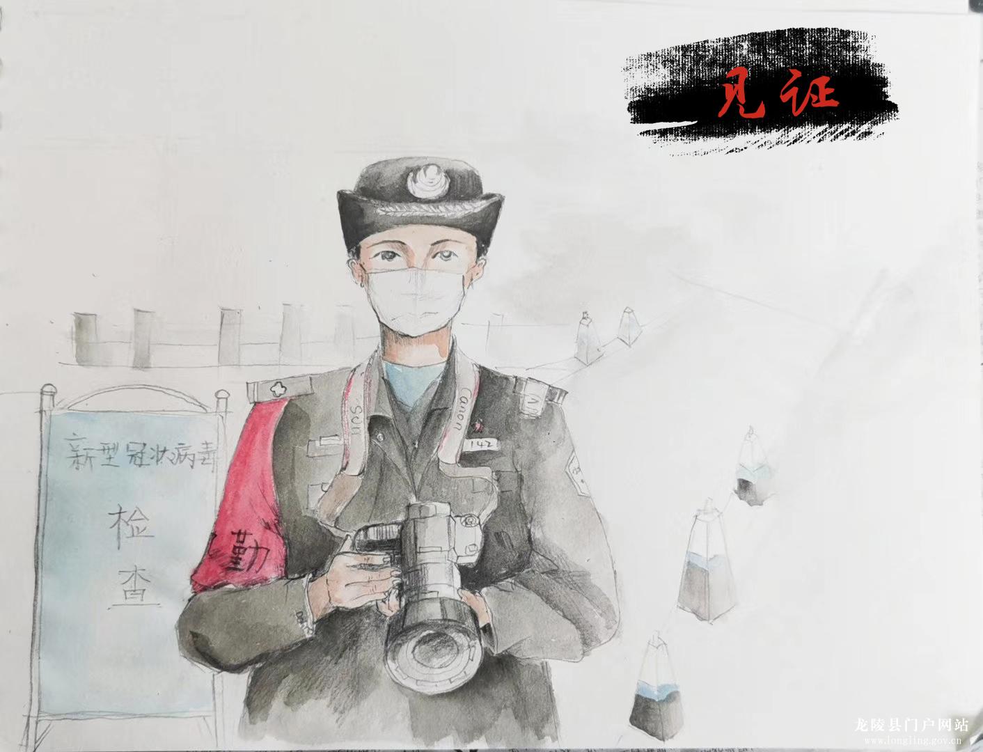 “指挥中心,这里是发热隔离点,现在报告战况。”作品《报告》栩栩如生,再现了民警坚守‘疫’线场景;“师傅,疫情严重,请配合检查。”《“疫”线执勤》弘扬了战“疫”民警文明执法,誓死打赢疫情阻击战的决心;《社区民警》刻画了公安机关发动群众加入战“疫”的动人画面;《烈日下的交警》将交通民警战天斗地的景象搬到了读者眼前;最引人瞩目的是《见证》,一名胸前挎着相机的女警非常自信地做好了采访前的准备,将宣传民警的日常工作从幕后推到了台前。“这名女警就是仙姐,警嫂让我们亮相了。”看到杨娇美的美术作品,许多宣传民警、辅警感到了无上光荣。