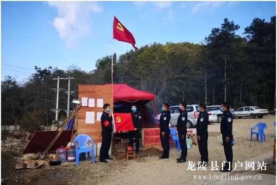 新型冠状病毒感染肺炎疫情发生后,龙陵县公安局认真贯彻习近平总书记系列重要指示精神,全警动员,建立党员先锋队和党员岗,充分激发党组织战斗堡垒和党员先锋模范作用,坚决打赢疫情防控阻击战。近日,龙陵杭瑞高速路口、保龙高速镇安收费站、龙新乡黄草坝、龙江乡勐柳高速路口、腊勐镇红旗桥等共计40个疫情防控卡点均成立临时党支部,来自全县公安机关的100余名党员民警代表在党旗下重温入党誓词。