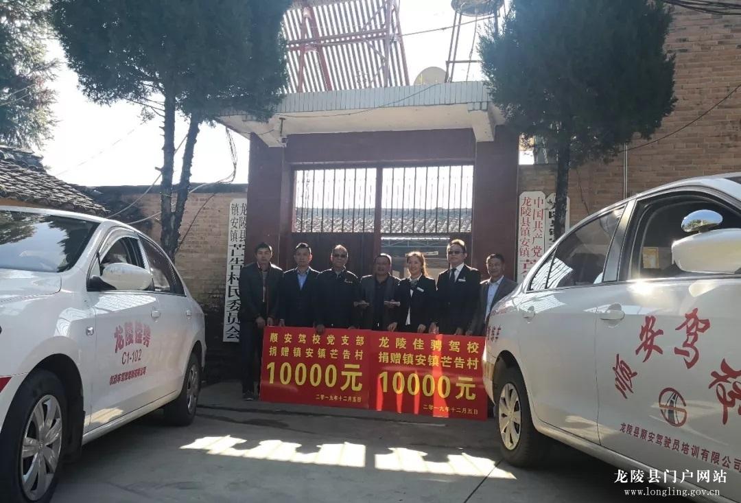 “杨支书,听说你们村青岩组要修水泥路了,我们两个驾校也表示一点心意,请您收下,山高坡陡修路确实不容易啊。”龙陵顺安驾校校长在捐赠仪式上拉着龙陵县镇安镇芒告村委会支部书记杨立富的手激动的说道。