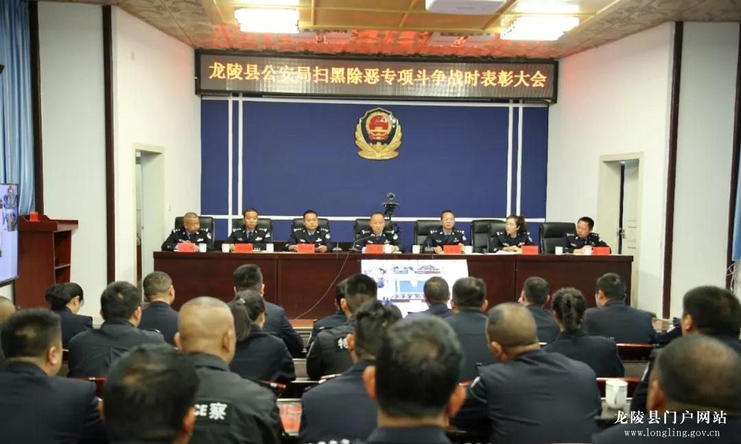 为坚定扫黑除恶民警斗志,推进扫黑除恶专项斗争持续开展,4月3日,龙陵县公安机关召开战时表彰大会,集中表彰该县公安机关涌现出来的5个先进集体、15名民警、24名辅警。表彰大会还宣读了受到上级表彰的2个侦办恶势力犯罪团伙集体和4名扫黑除恶民警的表彰命令。