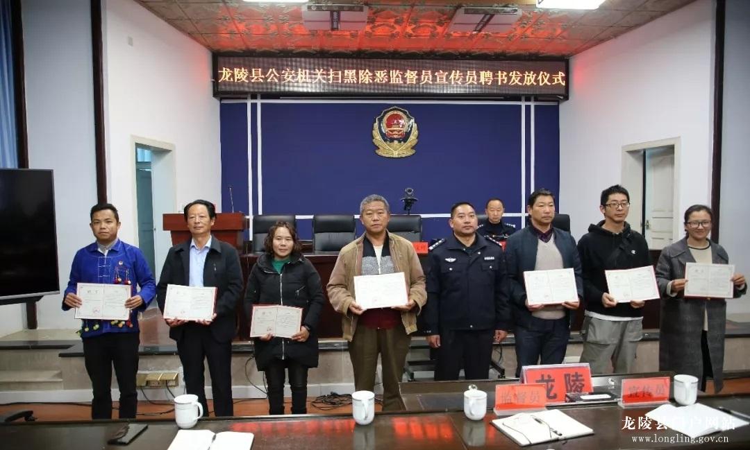 为推进扫黑除恶工作向纵深发展,广泛发动社会各界积极参与扫黑除恶专项斗争,龙陵县共聘请了1151人作为扫黑除恶专项斗争的监督员、宣传员。2月28日,龙陵县公安局举行公安机关扫黑除恶专项斗争监督员、宣传员聘书发放仪式。