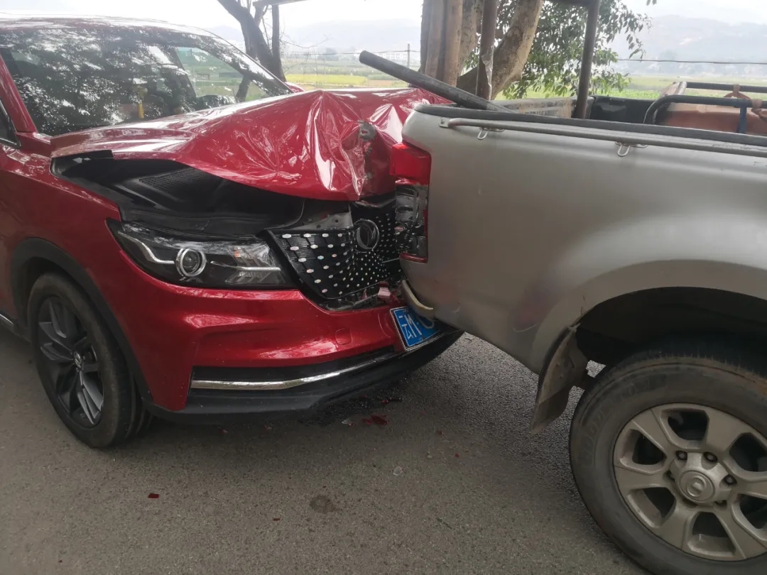 近日,龙陵交警大队处理了一起“奇怪”的事故。有群众报警称,发生两车相撞事故,请处置。交警大队事故处理民警到达事故现场后,看到一辆红色越野车和一辆银白色皮卡车相撞,红色越野车的车头已经严重受损,皮卡车尾部也受损变形。民警根据现场情况初步判断是一起追尾事故,但经过详细了解,事故远远没有那么简单。