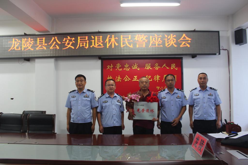 近日,龙陵县公安局召开退休民警座谈会,县局相关领导和民警共同欢送陈贵龙同志光荣退休。
