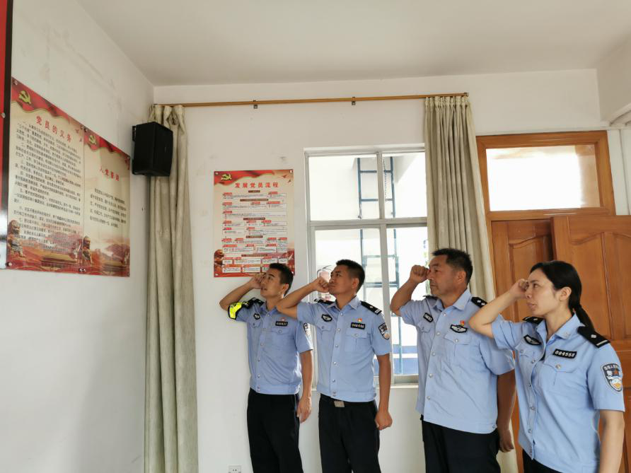 群众看党员,党员看支部。为培养一支有觉悟、有素质、有执行力的民警队伍,派出所党支部首先从班子抓起,坚持抓好领导班子自身建设,班子成员从自身做起,带头执行并遵守各项规章制度,以班子的良好形象带动民警。与此同时,党支部深入落实党建主体责任,严格落实“三会一课”制度,每周组织党员集中学习一次,讨论一次,做到有记录、有笔记、有心得,进一步加强民警的政治和理想信念教育;严格落实“主题党日”制度,并以重要事件和日期为节点,依托政治生日、实地参观学习、观看红色教育专题片、学习党规党纪、重温入党誓词等形式,激发党员干事创业的热情和积极性;加强特色支部建设,定期完善基础台账,落实痕迹化管理,确保在落实上不走样、不打折,切实提高支部党建工作水平。
