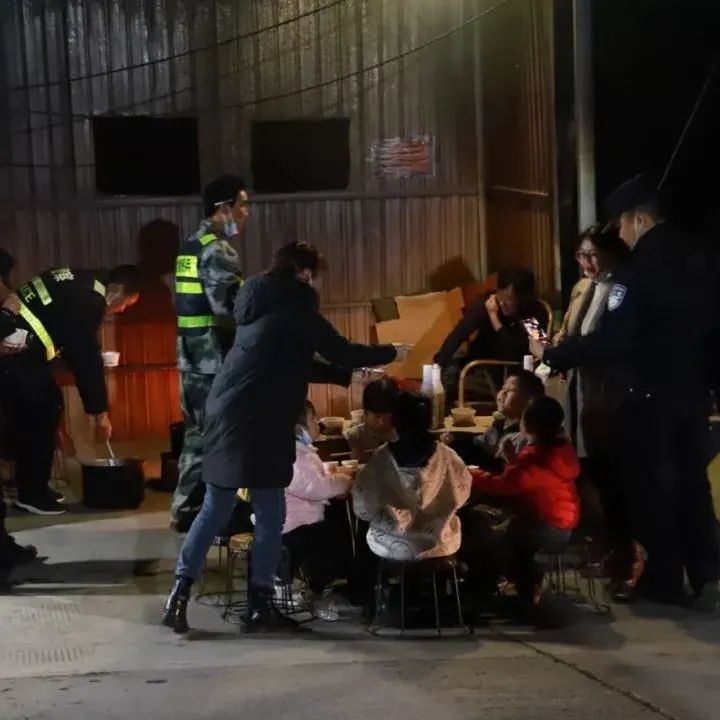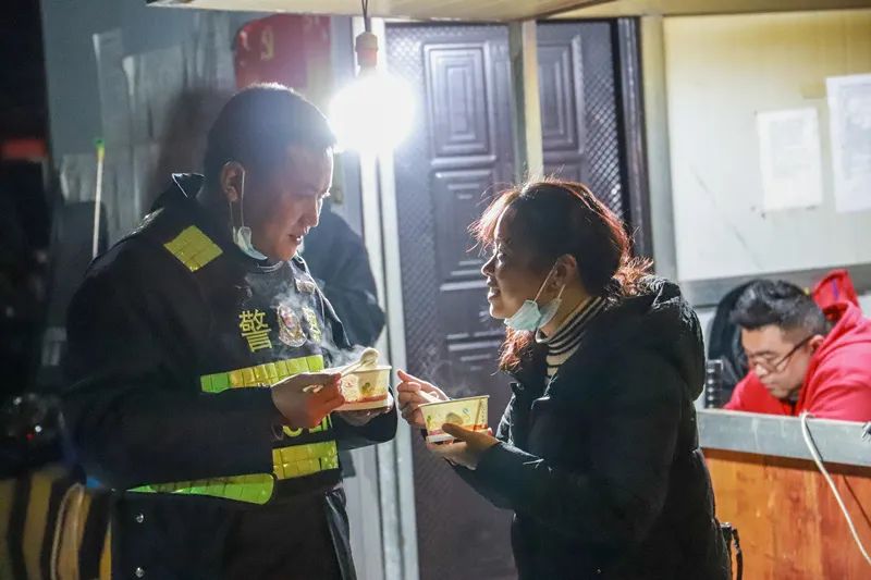 过一会儿,热气腾腾的汤圆出锅,警嫂们一碗一碗地打好,端给丈夫和卡点执勤的队友们,孩子们勤脚快手,把饮料递送给执勤人员。卡点不时有车辆经过,执勤人员一刻也不敢放松,在短暂工作的间隙里“争分夺秒”吞下汤圆,有的因正在进行查验工作,接到暖心汤圆却放在手边说“等会就吃”。