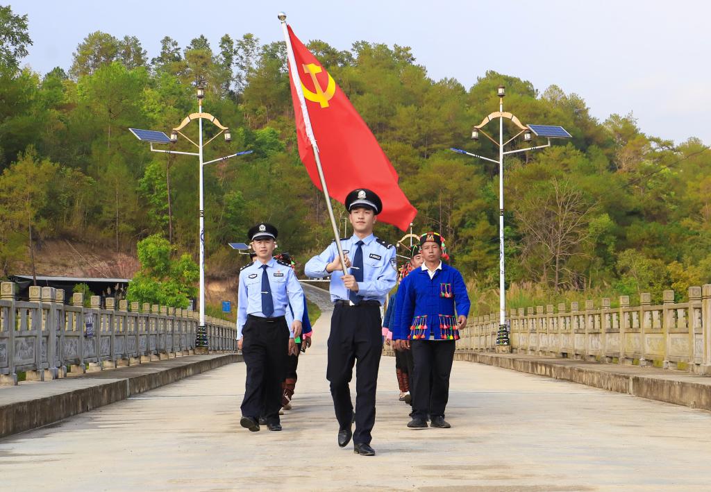 龙陵县蛮旦阿昌族寨子是龙山镇较偏远的山区,距离县城50多公里,居住着200多户1000多名阿昌族群众。为护航党的二十大,龙山派出所积极主动谋划,以党建为引领,以促进民族团结共建为导向,积极浇灌民族团结幸福花,开创具有鲜明民族工作特色的共建共治共享市域社会治理现代化新局面,警民团结携手共同维护社会大局安全稳定。
