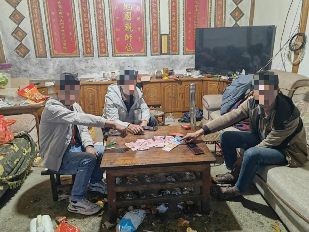 5月24日19时,镇安派出所接辖区居民何某电话报警,称自己和邻居发生纠纷,请求派出所前往处理。 接报后,民警立即赶到现场,却发现原来是何某与杨某、 邱某三人在家中以“捞腌菜”方式赌博,因为何某一直赢钱,杨某便怀疑是何某对扑克牌做了手脚,于是便与何某争论,二人各执一词互不相让,最后何某便报警求助。查清情况后,民警当场控制了三人,查扣了三人的2710元赌资及扑克牌等。