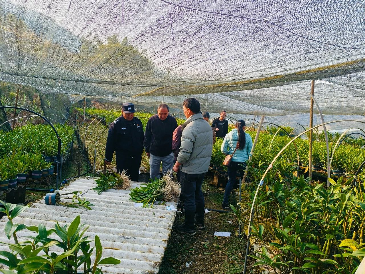 龙陵县公安局镇安镇派出所、环食药侦大队、森林消防队联合组成工作组,深入高黎贡山保护区开展巡山护林、隐患排查、宣传教育工作。通过“步巡”与“车巡”相结合,深入自然保护区,围绕是否有非法猎捕野生动物工具及是否存在非法破坏森林资源、非法垂钓、乱捕猎野生动物等违法行为,是否存在火灾隐患,如易燃物堆积、违规用火等情况进行排查。向周边群众宣传野生动物保护法律法规,提高群众的生态资源保护意识。同时,龙陵县公安局环食药侦大队联合林草局、农业农村局、市场监管局等部门,深入农贸市场、餐饮、快递、花鸟市场等,开展联合执法检查行动,全面排查非法交易、加工、食用野生动植物及其制品的违法行为。共检查快递行业2个,花卉种植基地2个,餐饮行业3个,对从业人员及负责人宣传严禁非法交易野生动植物相关法律法规,杜绝野生动植物资源违法犯罪。