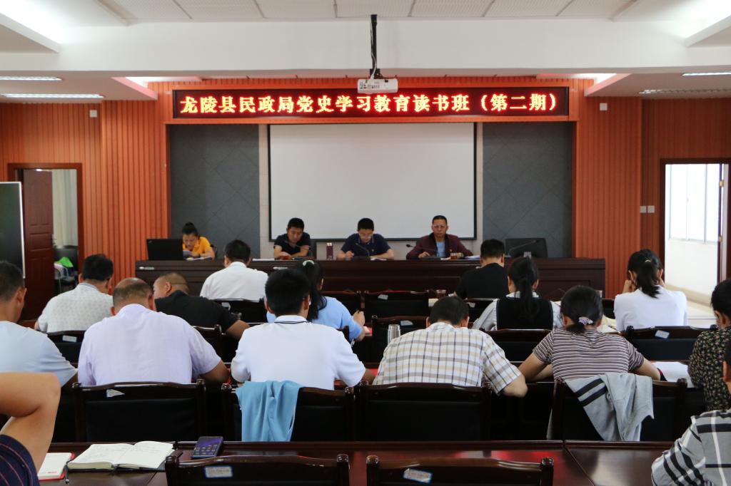 6月2日,龙陵县民政局开展党史学习教育第二次专题学习培训暨读书班,全体党员干部职工参加。本期读书班采取“集中学习+专题党课+电影党课+集体讨论”的方式进行。
