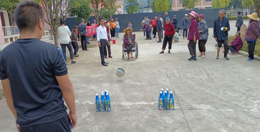 文艺演出结束,游园活动项目接着举行。游园项目有套圈、“投保龄球”、乒乓球等;确保每个项目都有工作人员维持秩序、讲解规则,在保障安全的情况下邀请老人依次排队参与到活动中来。老人们积极配合,跃跃欲试,井然有序排好长队,一项活动结束后由专门的工作人员当场分发奖品。为照顾卧床老人,工作人员把抽奖活动“搬”到床前。拿着由自己完成任务获得的奖品,老人们脸上笑呵呵,心里美滋滋,对自己翘起了大拇指。