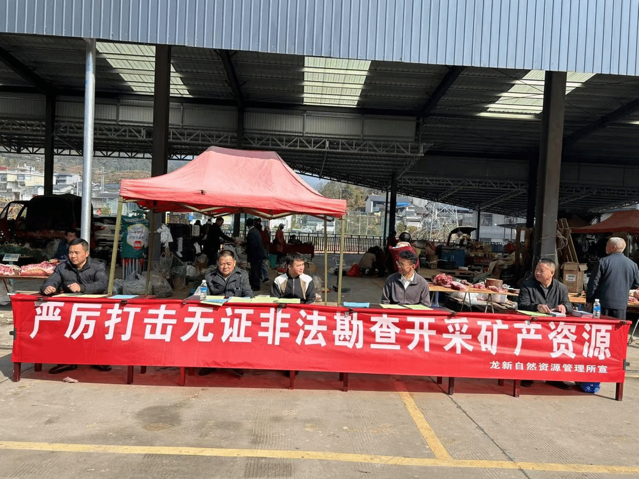 2025年3月3日、3月4日、3月6日龙陵县自然资源局、龙陵县司法局深入龙新街、勐冒街、黄草坝街开展宣传活动,以“严厉打击无证非法勘查开采矿产资源”为宣传重点,通过摆摊设点,悬挂标语横幅、摆放宣传展板、发放宣传资料、接受现场咨询等形式进行宣传,耐心细致为群众释疑解惑,使广大人民群众明白未取得采矿权,擅自采矿的违法行为应承担的法律责任。同时对《中华人民共和国土地管理法》《云南省土地管理条例》等法律法规和耕地保护政策等知识进行宣传。