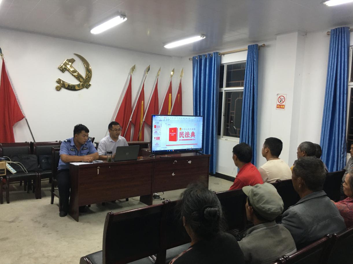 近日,腊勐司法所践行“我为群众办实事”实践行动,联合镇派出所、大垭口社区委员会深入大垭口社区新村就赌博、酒驾、防电信诈骗、《中华人民共和国民法典》《保山市龙陵松山战役战场遗址保护条例》开展一堂生动的法治宣传课,进一步激发群众学法、守法、用法意识。