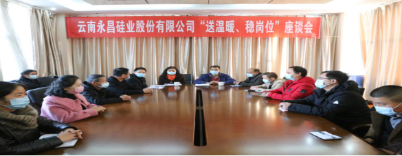 为全面贯彻落实云南省人力资源和社会保障厅关于2021年春节前后开展“送温暖、稳岗位”专项行动精神,让企业员工进一步了解人社部门的惠企政策,让更多、更好的服务惠及企业,近日,龙陵县人社局到永昌硅业开展“送温暖、稳岗位”工作座谈会。