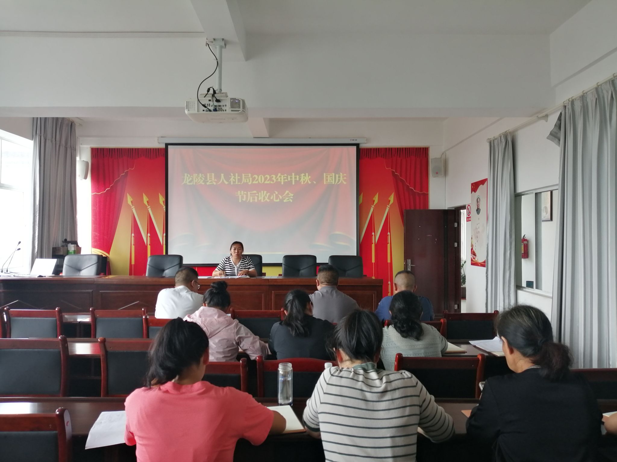 10月7日,龙陵县人社局召开中秋、国庆“双节”节后收心会,督导全体干部职工收心聚力,将节日幸福感转化为工作的热情和动力,以昂扬的斗志和饱满的热情投入到工作中。