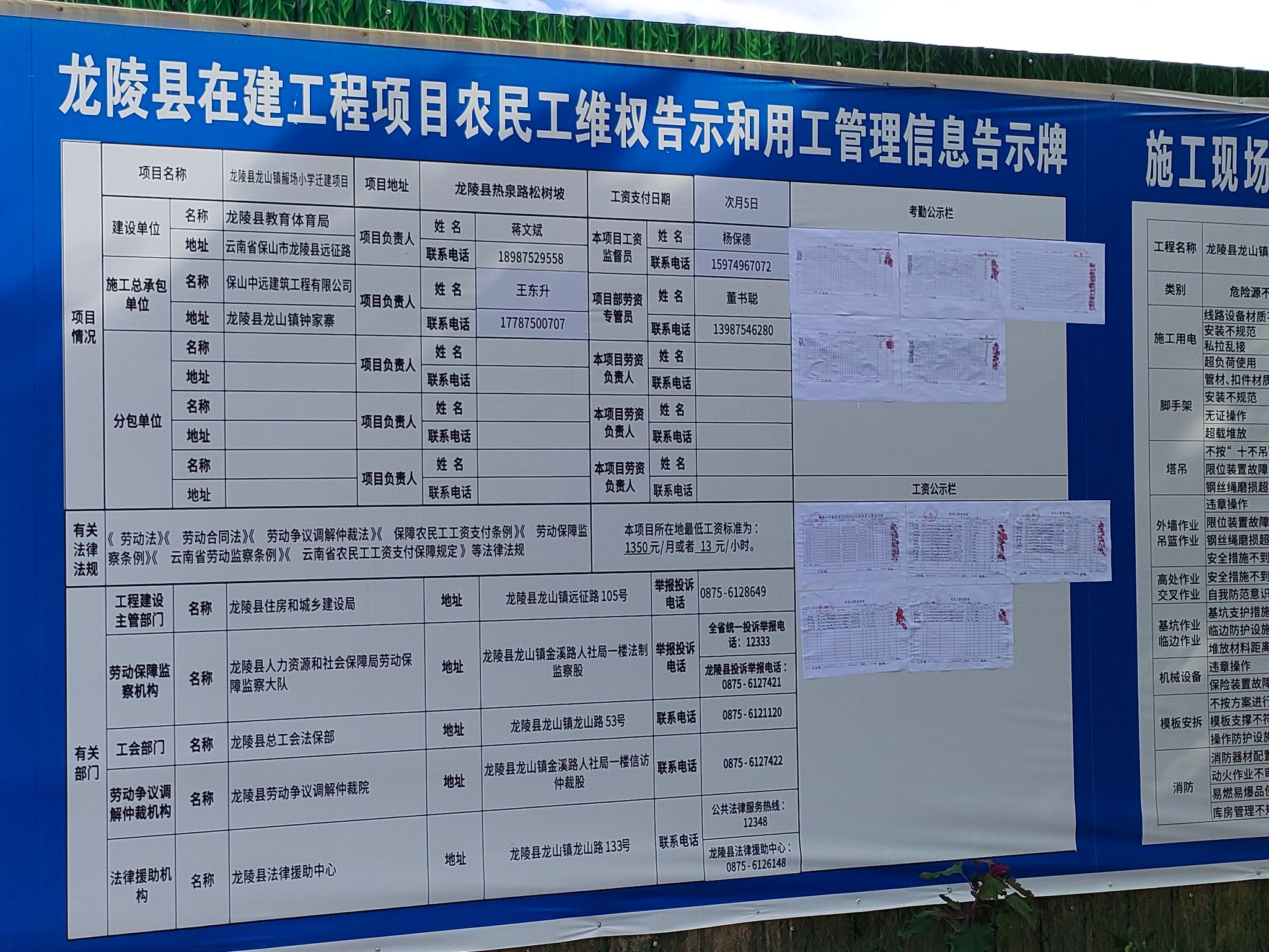 近日,龙陵县龙山镇赧场小学迁建项目通过云南省根治拖欠农民工工资工作领导小组办公室审定,获评“云南省2023年第一批‘无欠薪项目部’”称号。