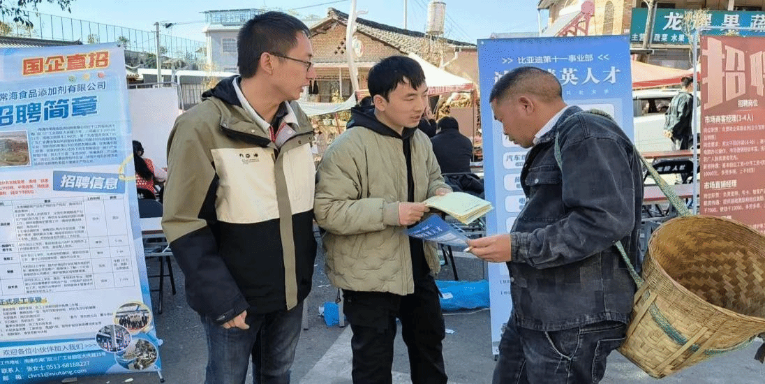 2025年1月20日,由龙陵县人力资源和社会保障局主办、龙江乡人民政府协办、联合江苏省南通市海门区人力资源和社会保障局在龙江乡勐柳街开展2025年“春风行动”暨农村劳动力转移就业“百日攻坚行动”专场招聘会。招聘会上有江苏省南通市海门区人社局携江苏省南通市6家企业、常州市高新区人力资源产业园携比亚迪、龙陵县人社局携县内外5家人力资源公司及县域企业移动公司等17家单位参加招聘会。