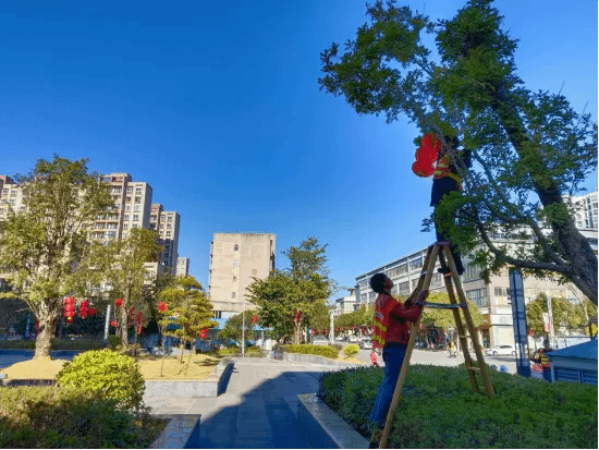 连日来,县住房和城乡建设局积极投身于街道亮化美化工程。工作人员分工明确,彼此之间默契配合、相互协作,争分夺秒地将一个个象征着喜庆与美好的红灯笼悬挂在树梢之上。为即将到来的春节营造出红红火火、喜气洋洋的浓厚节日氛围,让全县人民在这份浓郁的年味中,感受到新春佳节的独特魅力与温暖。