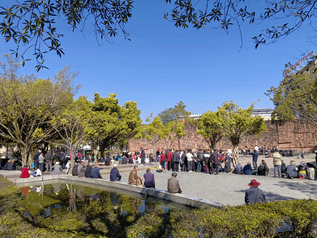 龙陵抗战广场,清澈水池映照着蓝天绿树,老人们围坐在一起,或闲话家常,或以棋会友。广场上的浮雕墙、纪念台、出征泉静静诉说着滇西抗战的烽火岁月,如今这里已成为市民缅怀历史、休闲放松的精神家园。让铭记英雄的土地在冬日里洋溢着温暖生活气息。
