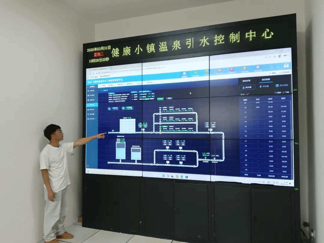 走进健康小镇温泉引水控制中心,值班人员尹世健正通过龙陵县温泉引水工程智慧管理平台,实时监测大硝泵站、茄子山水池、晃塘减压池、杨梅山水池及县城水池的液位与水温。尹世健介绍:“该平台可实现精准调控,当县城水池液位低于1.5米时,系统远程自动启动大硝泵站;液位达到2.5米时自动关闭,确保温泉水以稳定流量和温度直达用户终端,全方位保障供应的安全性与稳定性。”