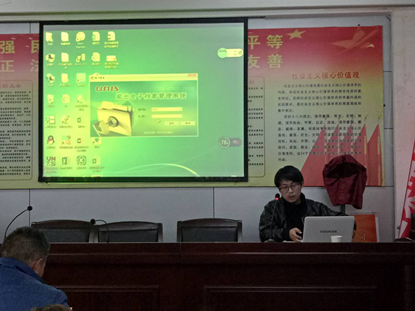 保山竞业电子技术有限公司董志彬工程师对紫光电子档案管理系统开展了培训,分别从文件整理、文件归档、打印归档文件目录、档案查询利用、档案信息打包移交、数据备份等6个方面进行了细致的讲解培训,并针对各个参会人员提出的问题进行了解答。