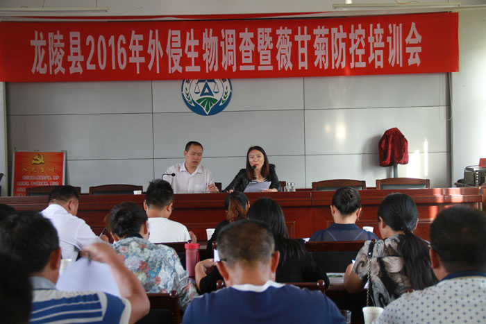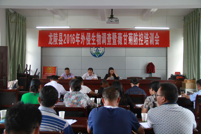 龙陵县地处边境一线,存在着薇甘菊传入的风险,为保护我县农业生产环境安全。8月26日,龙陵县2016年外侵生物调查暨薇甘菊防控培训会在农业局三楼会议室召开。会议总结了2015年外侵生物调查和防控工作,安排部署2016年外侵生物调查和防控工作。农业局局副局长杨月仙,县十个乡镇农业技术推广站负责人及农业局农环站全体人员共40余人参加会议。