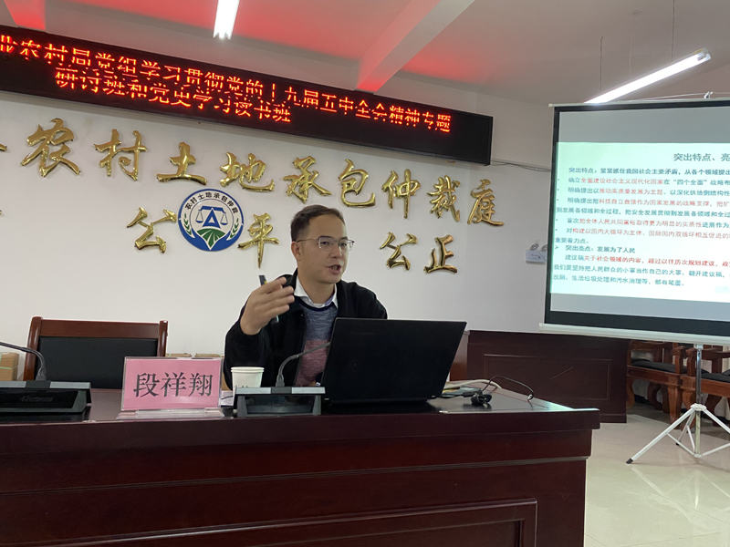6月27日至30日,龙陵县农业农村局举办“学习贯彻党的十九届五中全会精神专题研讨班暨党史学习教育读书班”,县农业农村局全体干部职工150余人参加培训,培训班上邀请了县委党校段祥翔老师进行了专题辅导。