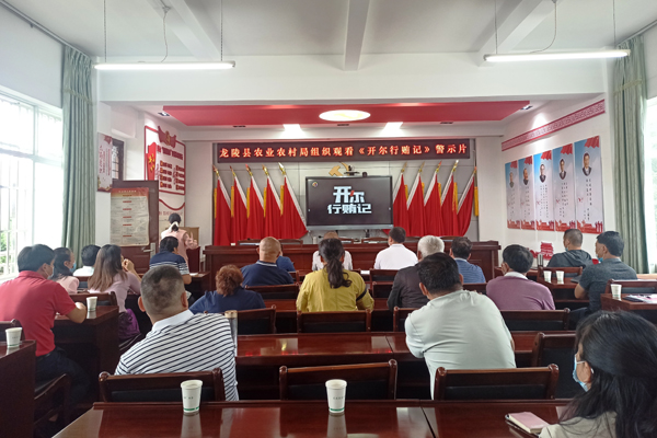 8月9日上午,龙陵县农业农村局在周一集中学习会上组织观看了由省纪委省监委同云南广播电视台拍摄制作的《开尔行贿记》警示片。局班子成员、各股室、各二级单位负责人共计60余人参加观看。