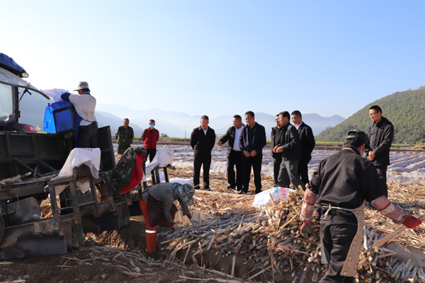 2022年1月7日,保山市农业农村局局长何树林及有关领导、工作人员到龙陵县勐糯蔗区调研。