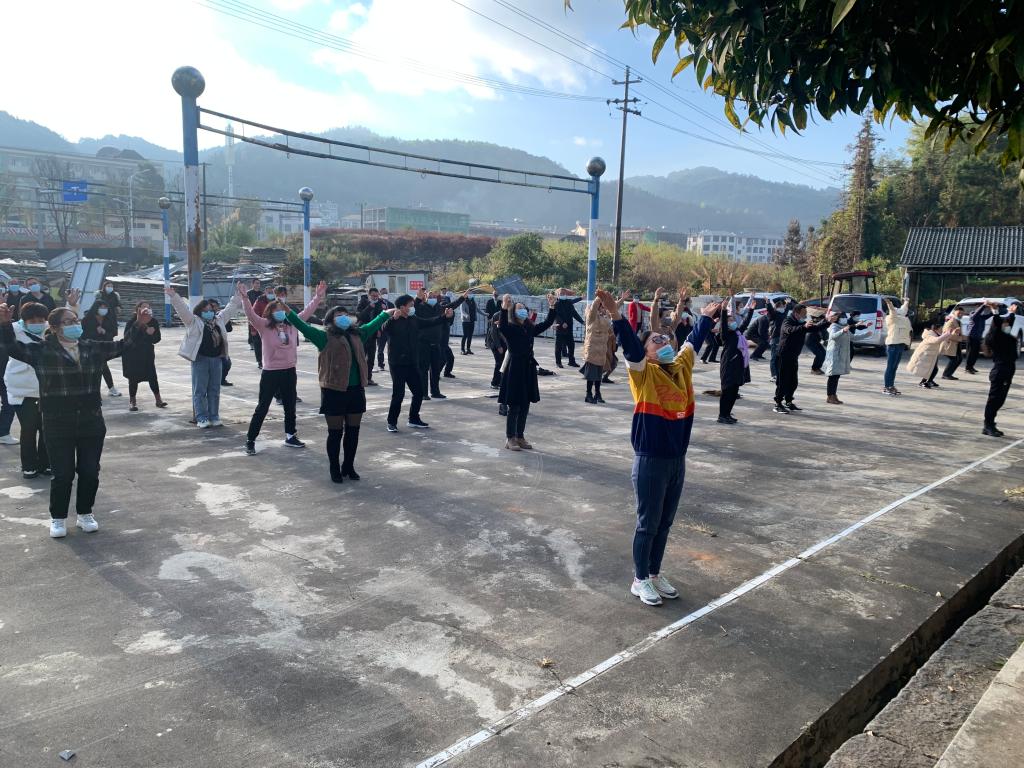 赶着岁末的快进步伐,12月12日,县农业农村局120余名干部职工在县农经站操场上喝着节拍做起了工间操,大家个个精神倍振,目不转睛、屏气凝神地盯着领操人伸开手臂、弯下身腰、踢腿蹦跳……后排盯着前排、老的跟着少的,展现出农业系统团结奋进的全新面貌。