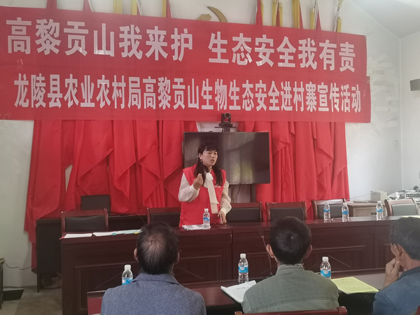 4月25日,龙陵县农业农村局组织8名技术专家深入龙江三台山开展高黎贡山生物生态安全保护知识宣传培训。农业农村局、龙江乡人民政府分管领导及农业综合服务中心有关人员、驻村工作队员、部分群众共59人参加了活动。