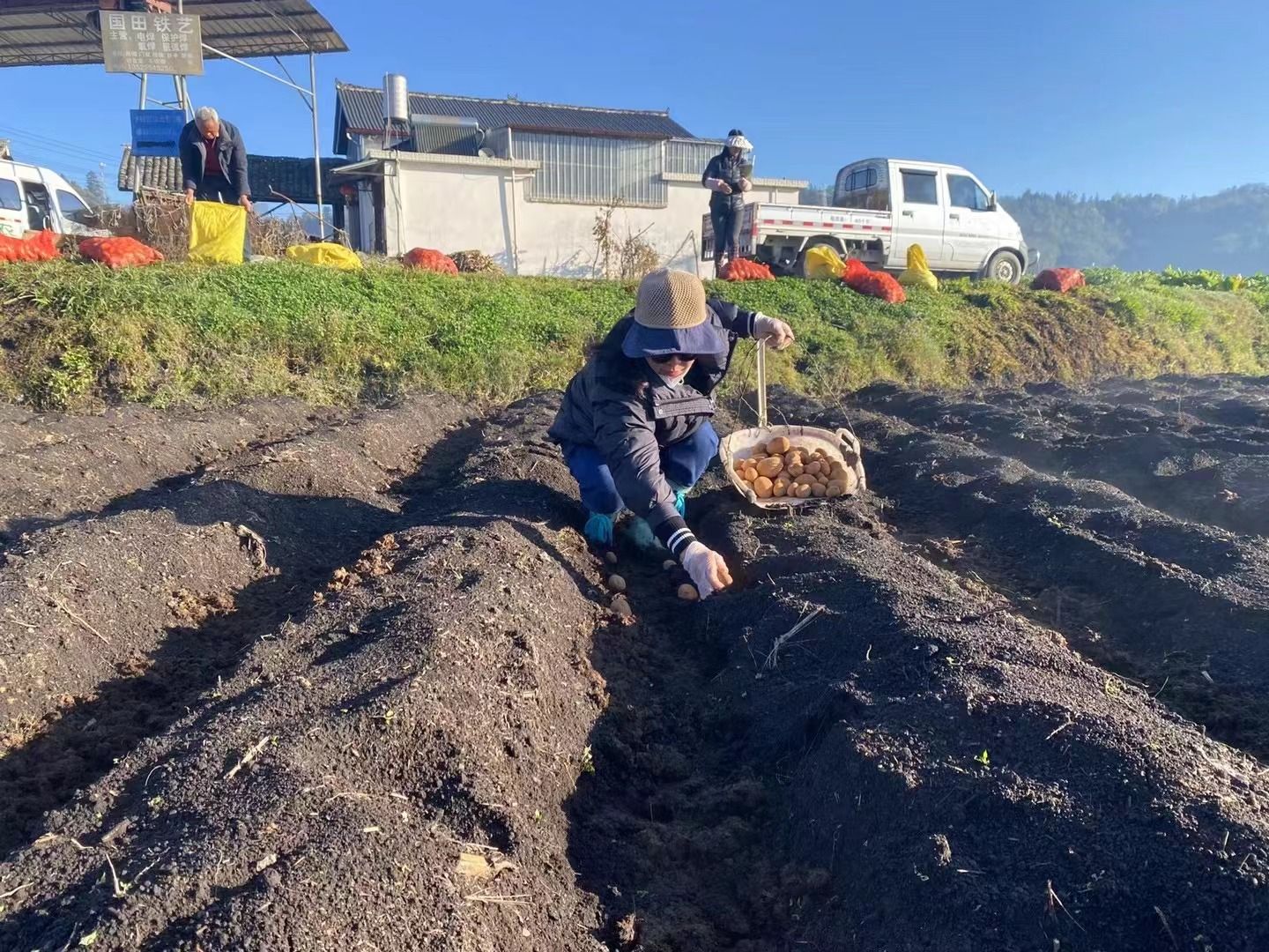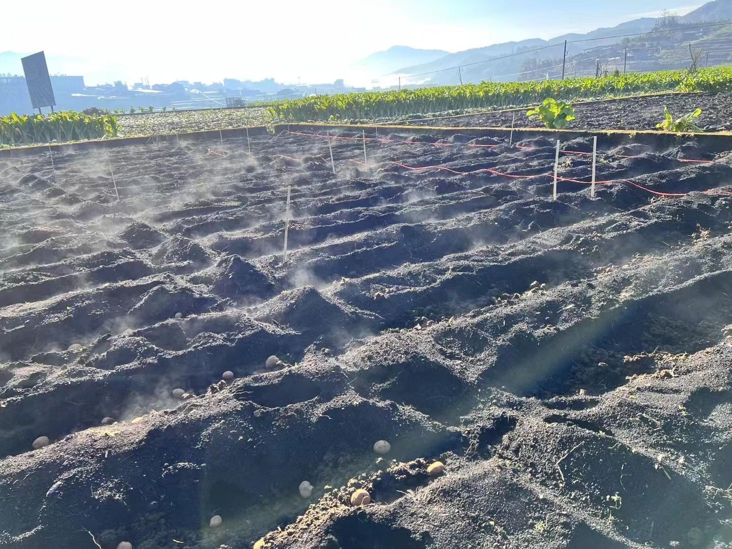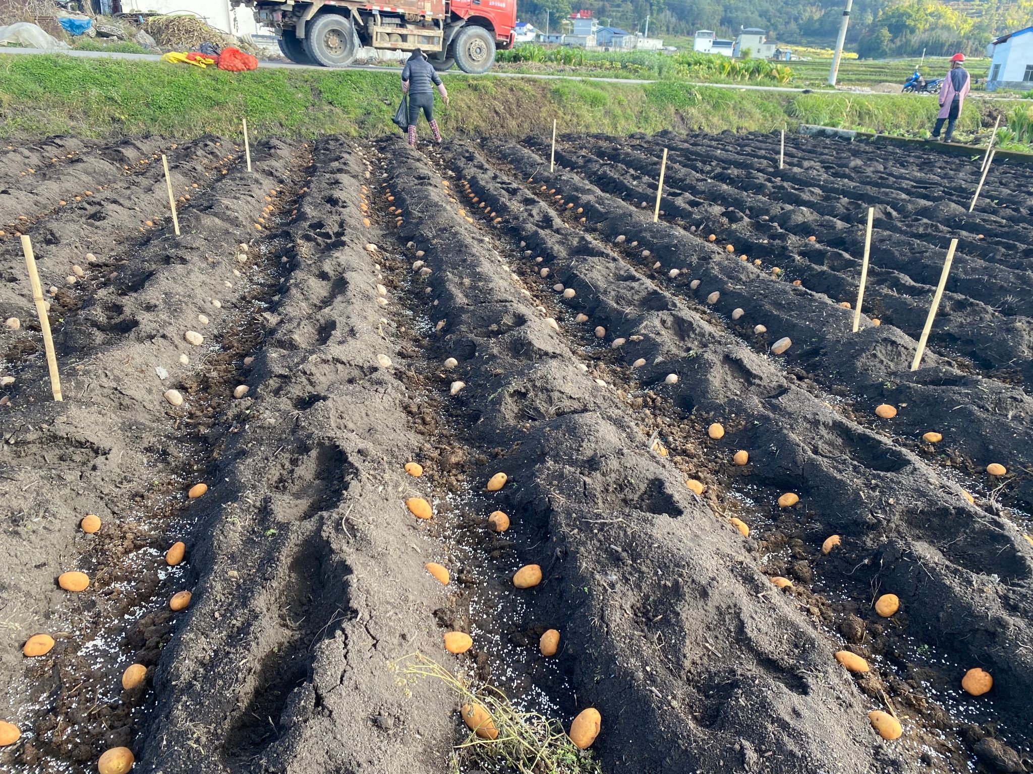 近日,龙陵县农业技术推广中心专家深入龙新乡勐冒村开展2023年马铃薯引种品比试验。在试验地里,只见农技人员各司其职,有条不紊的进行选种、破种、消毒杀菌、理沟、划区、施肥、放种、覆膜,试验田里呈现一派繁忙热闹的景象。