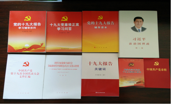 二是组织党员干部带头学习。统一订购党的十九大精神学习辅导材料20多套,党员干部人手一套,要求党员干部要有计划、有步骤、有重点地带头原原本本、逐字逐句研读党的十九大报告和党章,完整领会党的十九大精神,真正从学习中提升理论水平、大局把握能力和推动本职工作的本领。截至目前,共撰写学习笔记15本,心得体会15篇。