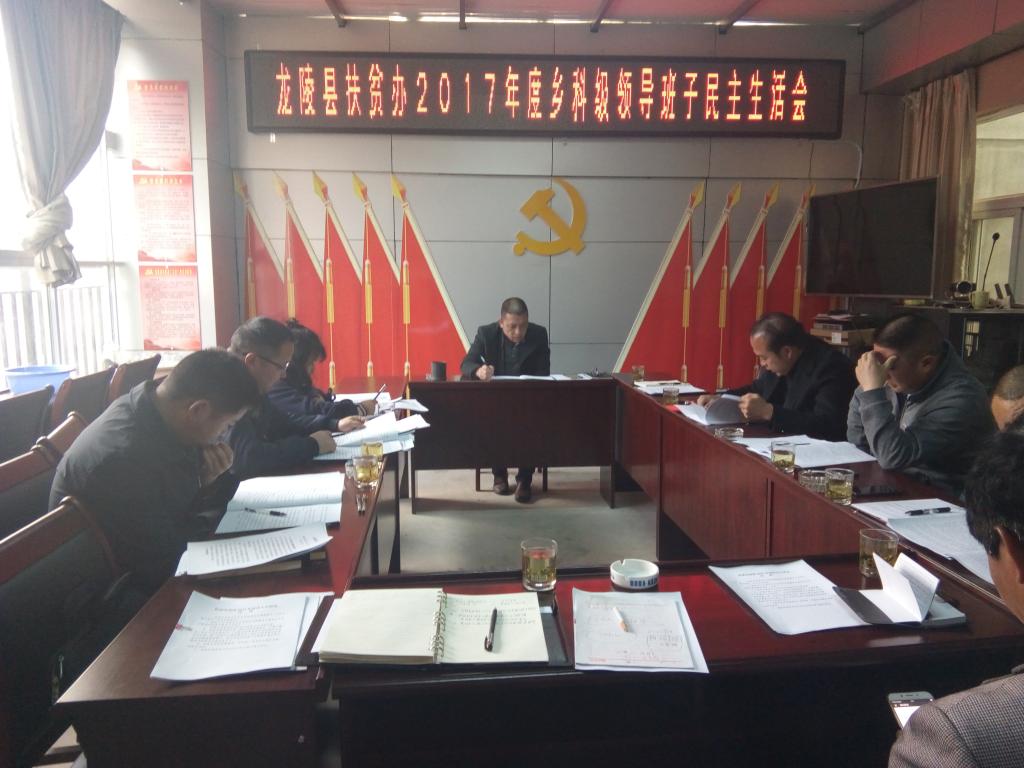 2月11日,龙陵县扶贫办党组召开了2017年度乡科级以上党员领导干部民主生活会,会议由党组书记毕红安同志主持,县委第四督导组组长杨兴碧、成员陈媛媛和段兆立同志到会指导。