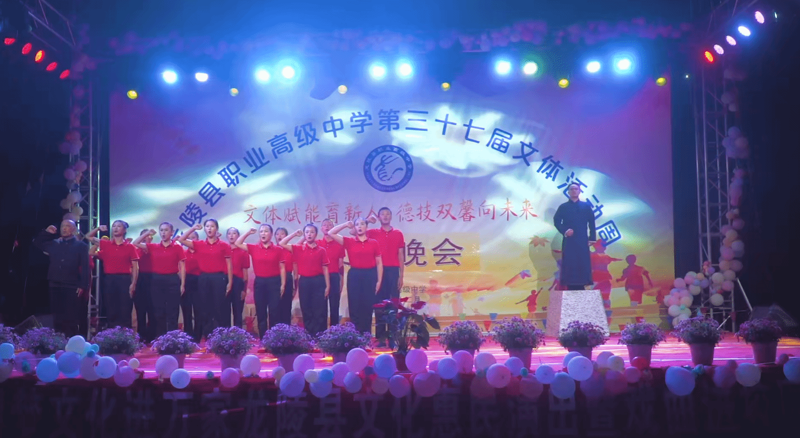 在欢快的音乐声中,龙陵县文化馆、民族文化工作队2024年迎新元旦文艺晚会在龙陵县职业高级中学拉开了帷幕。通过丰富多彩的节目,展现了龙陵地区独特的民族文化和丰富的艺术魅力。